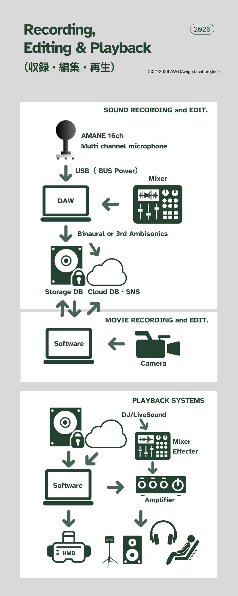 AMANEは様々な立体音響ソリューションの核となるマイクシステムとして利用頂けます。